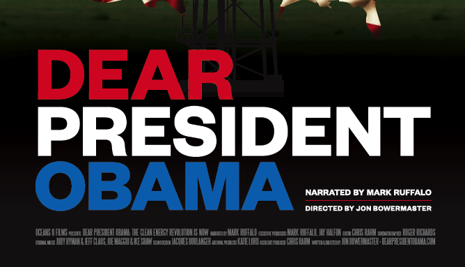 Dear President Obama, The Clean Energy Revolution is Now, narrated by 3-time Academy Award nominated actor Mark Ruffalo, calls on President Obama to ban fracking and join the “anti-drilling” majority growing across the US. Oceans 8 Films is excited to announce the film’s premiere in Washington D.C. on March 18, 2016 as part of the Environmental Film Festival, at the National Geographic headquarters, followed by a 30-day screening tour in March and April.