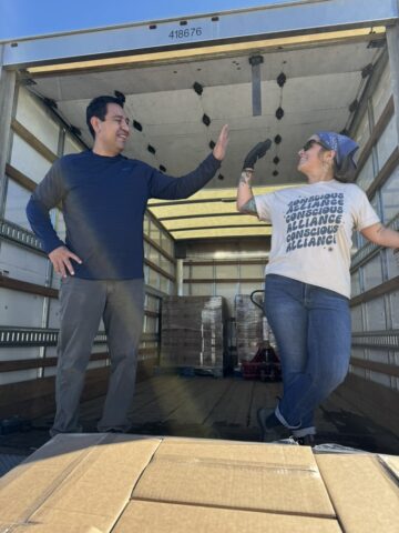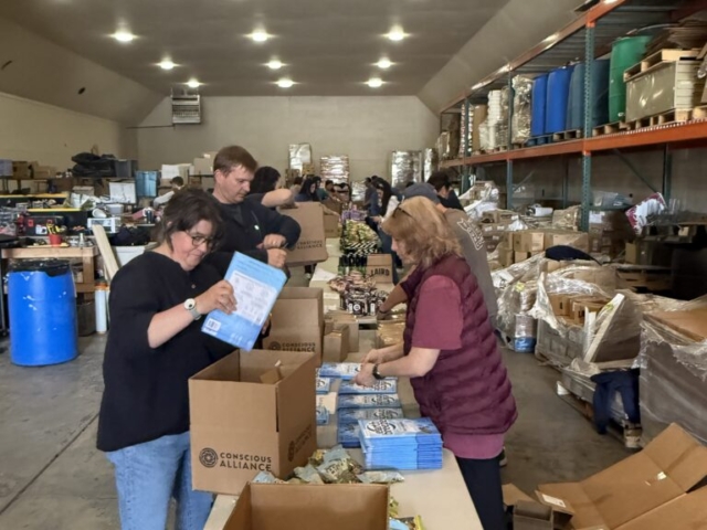 Conscious Alliance continues to nourish families with heart and purpose, and we’ve been grateful to play a small part in that effort. Recently, eTown staff gathered at their headquarters in Broomfield, Colorado, to help prepare a food delivery bound for Pine Ridge Reservation in South Dakota.